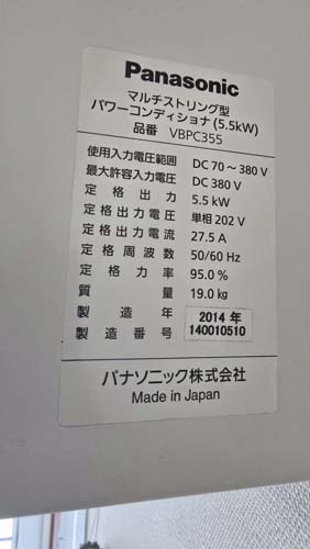 鹿沼市今宮町 パナソニック パワコンディショナ マルチストリング型VBPC355→パナソニック パワコンディショナ屋内用集中型VBPC255NC3 パワコン交換工事