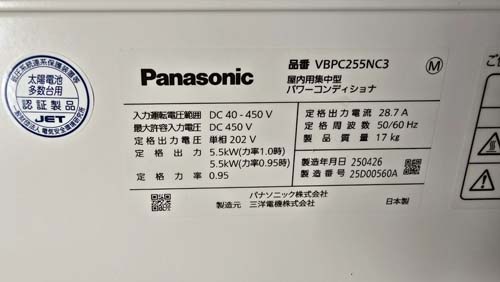 鹿沼市今宮町 パナソニック パワコンディショナ屋内用集中型VBPC255NC3 パワコン交換工事|栃木で壊れたパワコン交換修理は最短即日対応|栃木パワコン交換ショップ